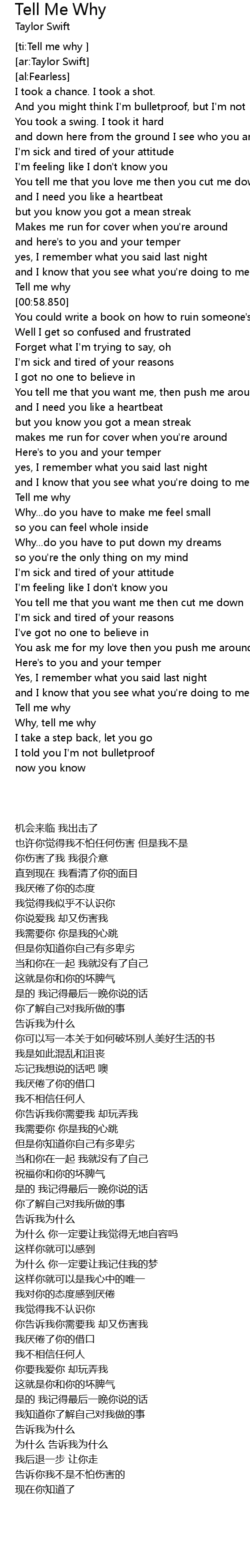 [ti:Tell me why ] |