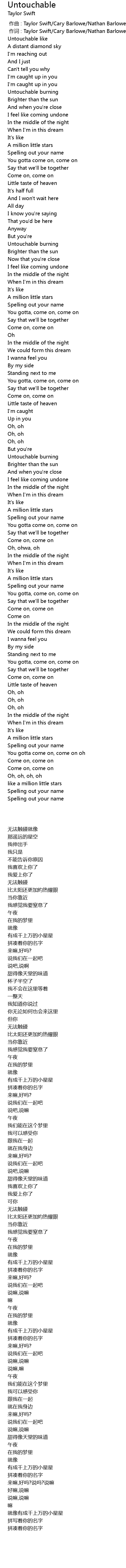 | [00:01.00] | 作词 : Taylor Swift/Cary Barlowe/Nathan Barlowe/Tommy Lee James |