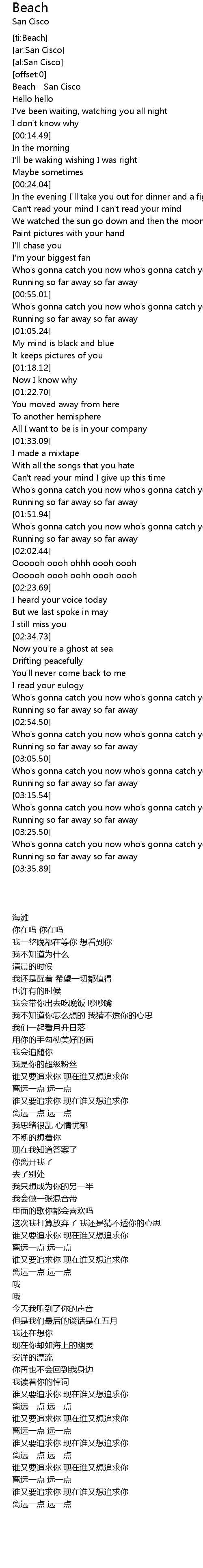 | [00:00.97] | Beach - San Cisco |