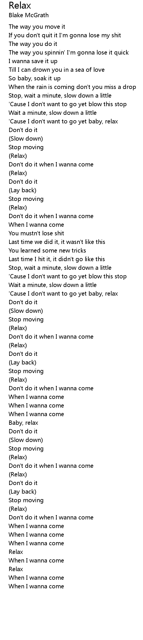 'Cause I don't want to go yet baby, relax |
