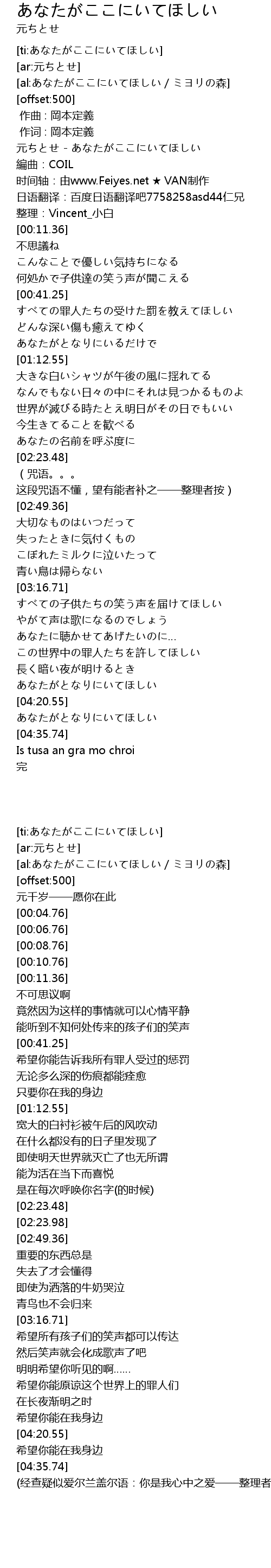 | [ti:あなたがここにいてほしい] | |