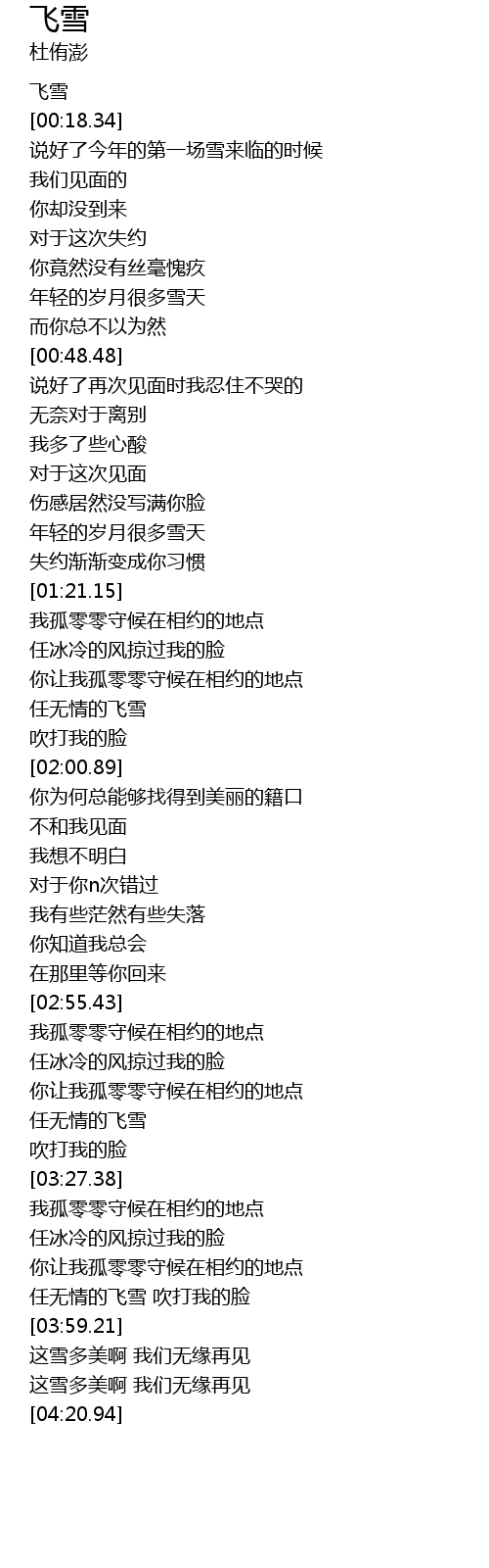 | [03:59.43] | 这雪多美啊 我们无缘再见 |