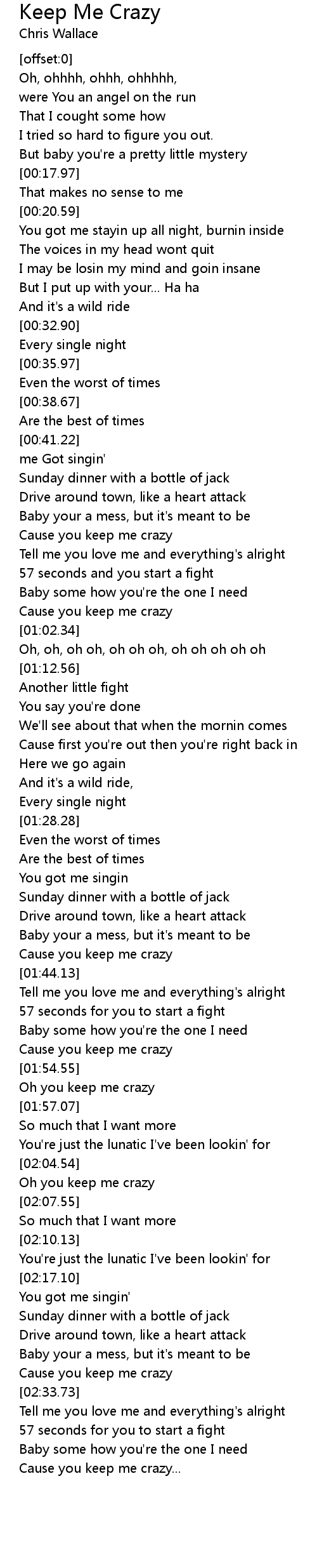 Cause you keep me crazy... |
