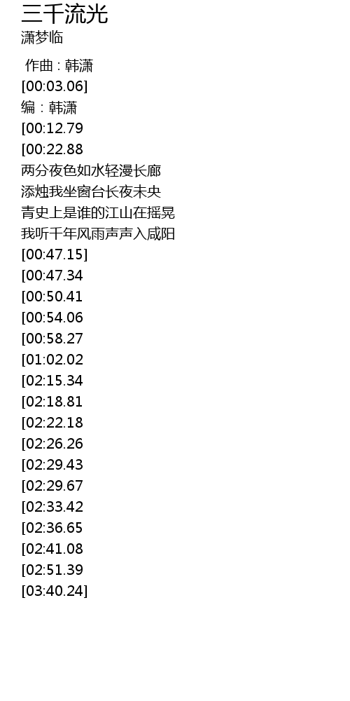 | [03:03.04][02:15.34][01:02.20] | sān qiān liú guāng nǐ shèng zhuāng fēng huà qī liáng |