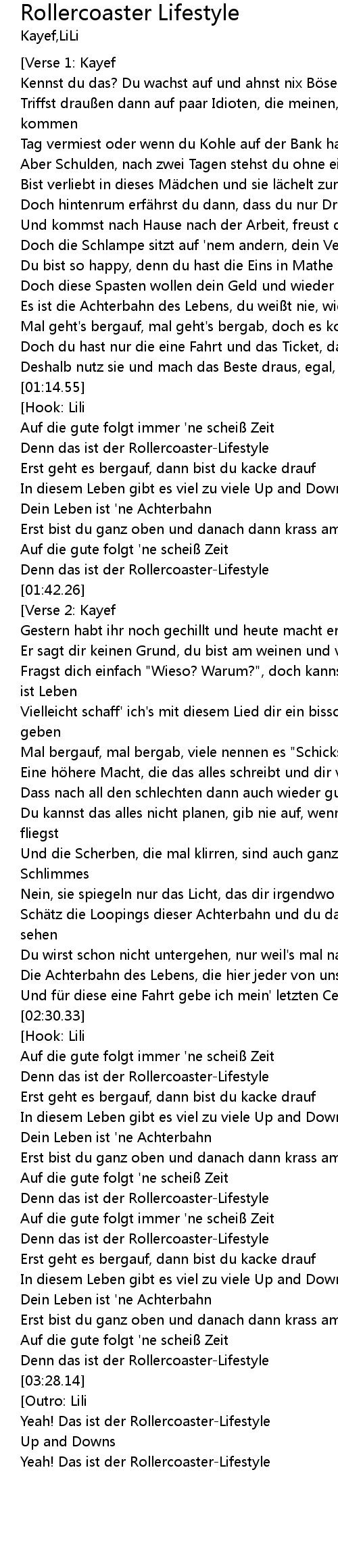 | [03:22.77] | Denn das ist der Rollercoaster-Lifestyle |