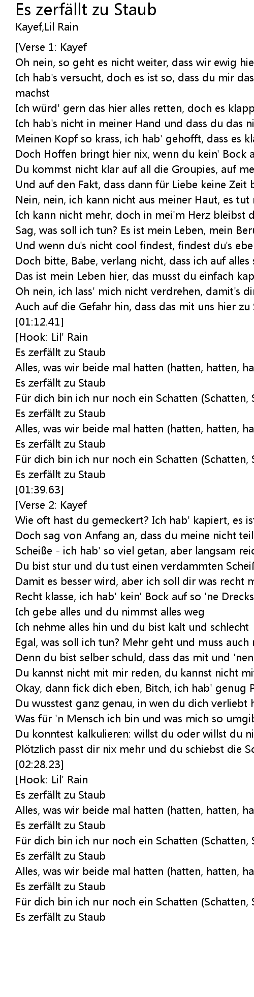 | [01:28.93] | Alles, was wir beide mal hatten (hatten, hatten, hatten) |