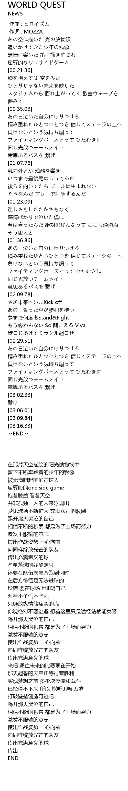 | [02:53.19] | 同じ光放つチームメイト |