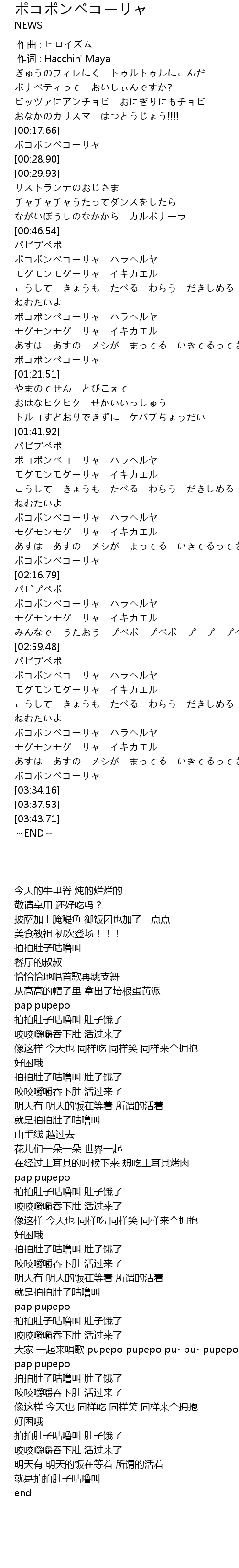 | [03:29.97] | ポコポンペコーリャ |