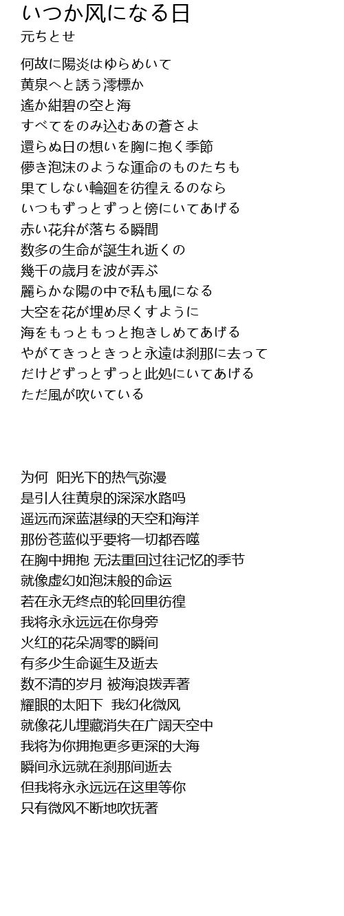 | [03:24.170] | 麗らかな陽の中で私も風になる |