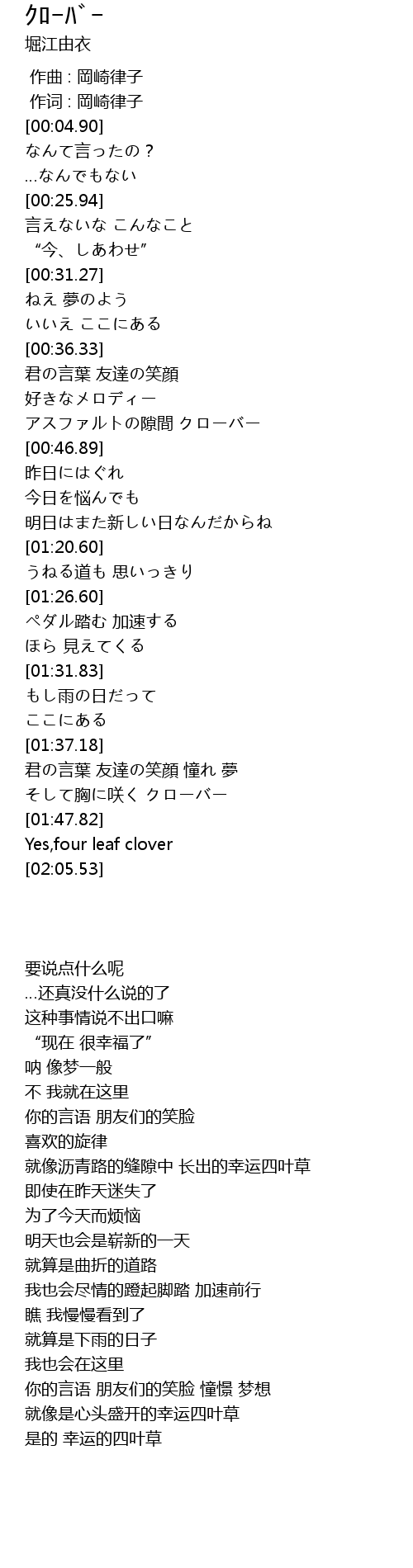 | [00:43.53] | アスファルトの隙間 クローバー |