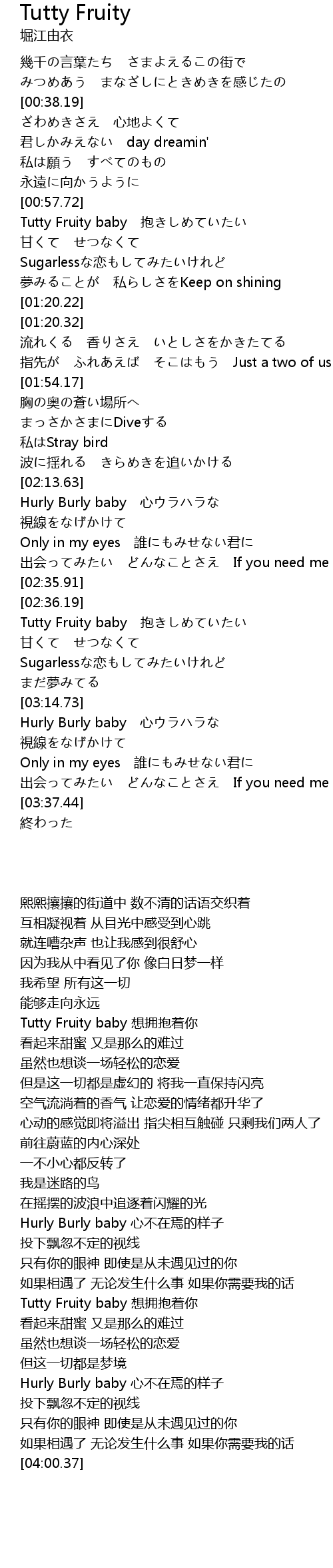 | [02:57.44] | Tutty Fruity baby 抱きしめていたい |