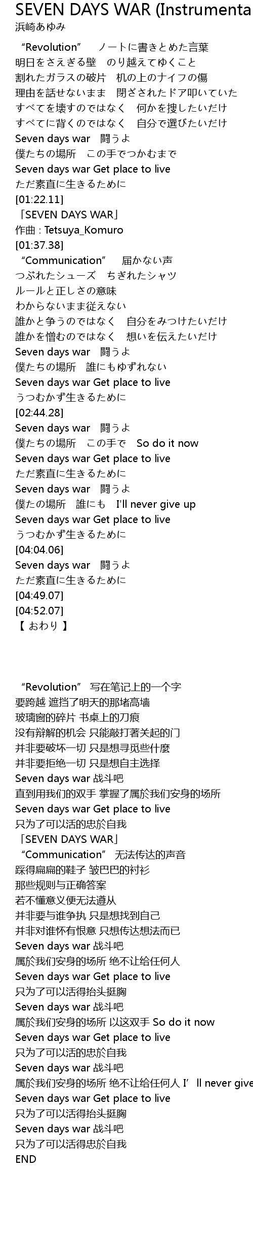 | [01:25.38] | 「SEVEN DAYS WAR」 |