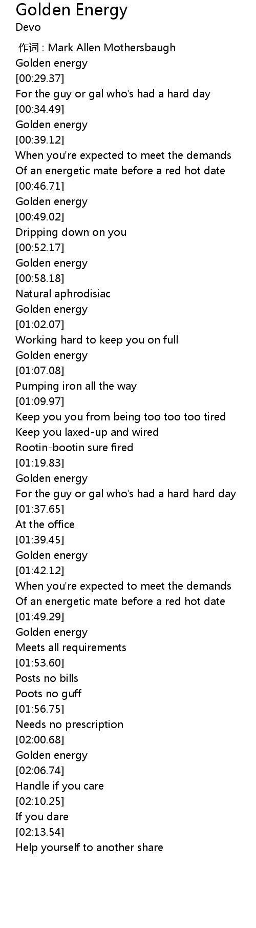 | [00:00.00] | 作词 : Mark Allen Mothersbaugh |