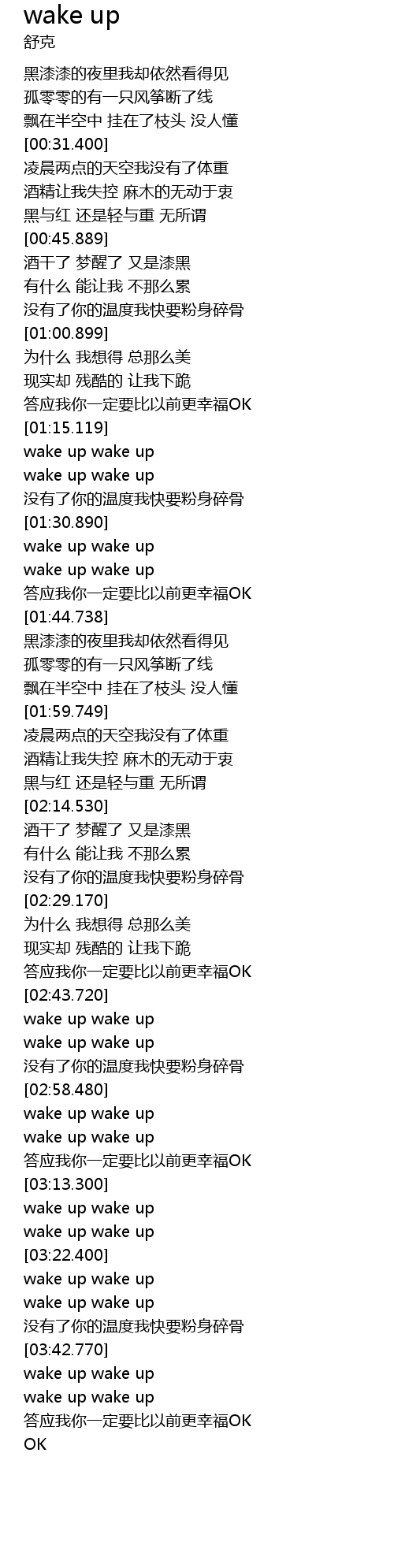 | [03:29.950] | wake up wake up |