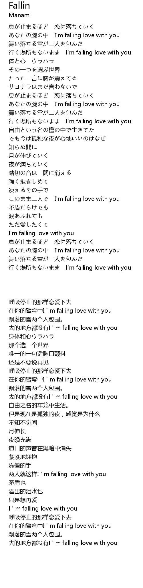 | [00:29.68] | 行く場所もないまま I'm falling love with you |