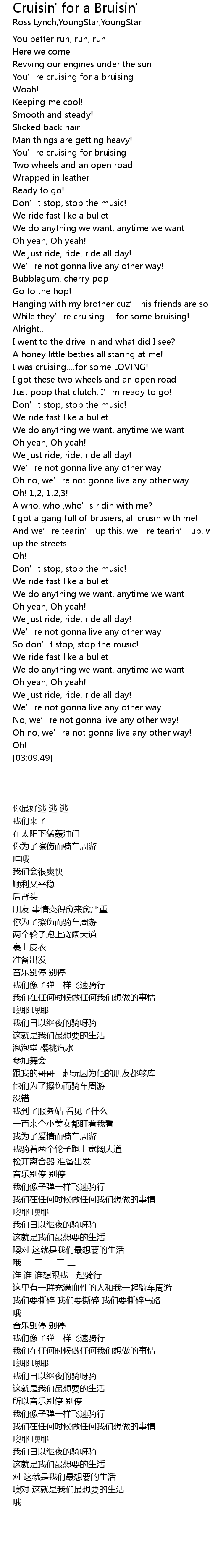 | [00:57.70] | While they' re cruising. for some bruising! |