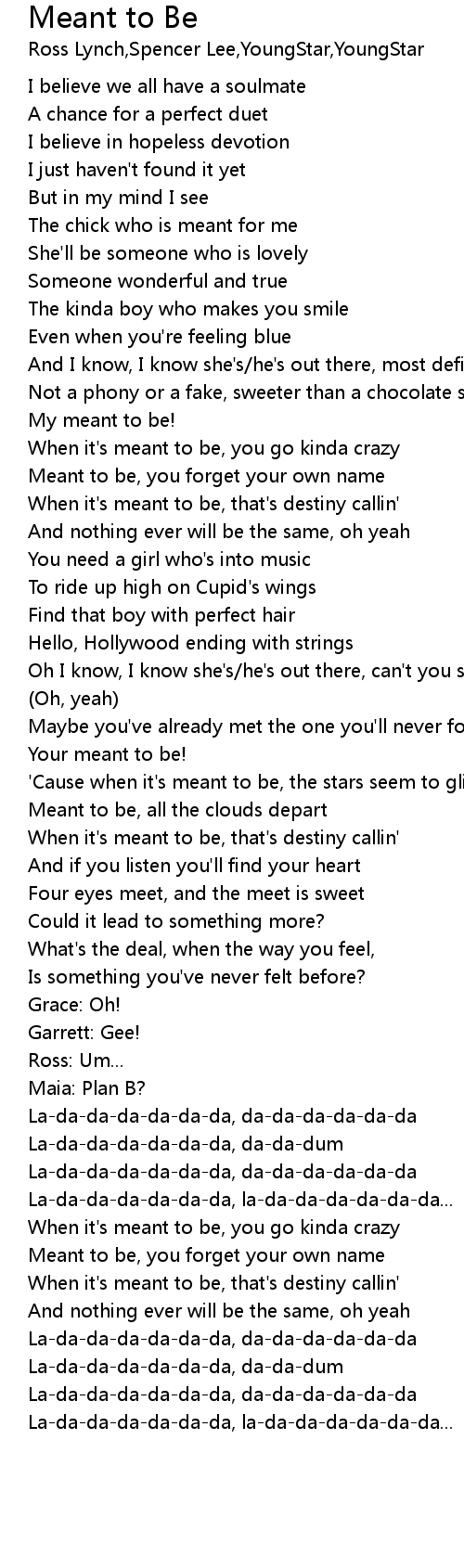 When it's meant to be, that's destiny callin' |