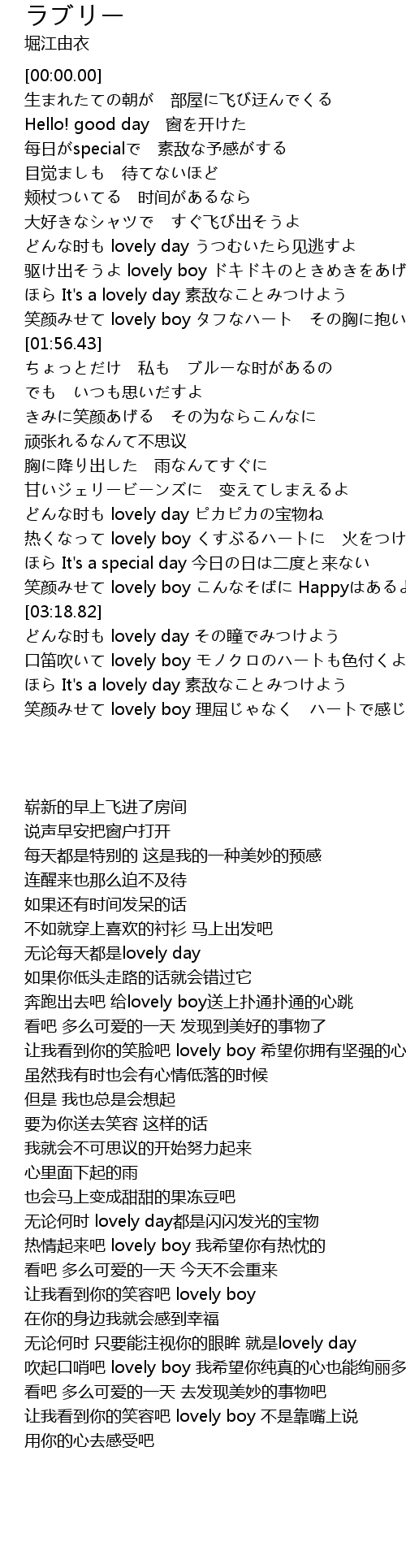 | [01:37.99] | ほら It's a lovely day 素敌なことみつけよう |