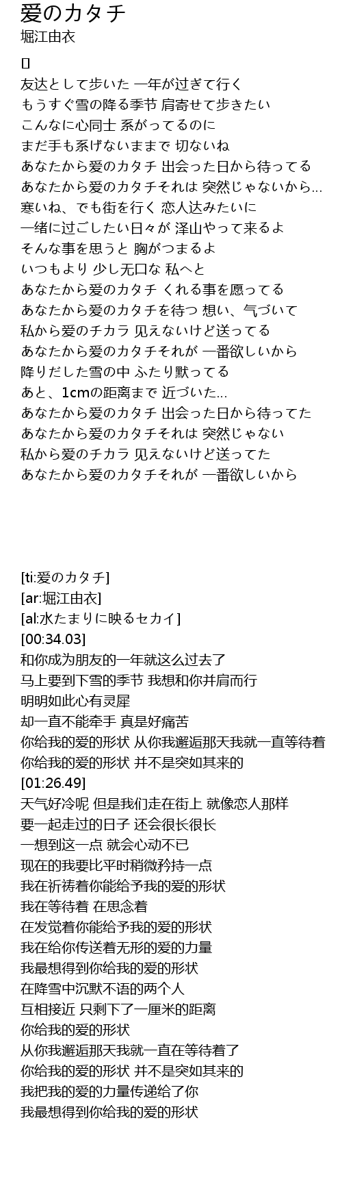 | あなたから爱のカタチ くれる事を愿ってる | |