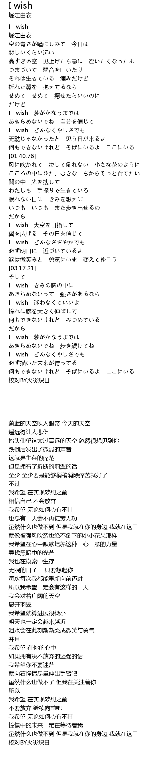 | [02:33.29] | I wish dà kōng mù zhǐ |