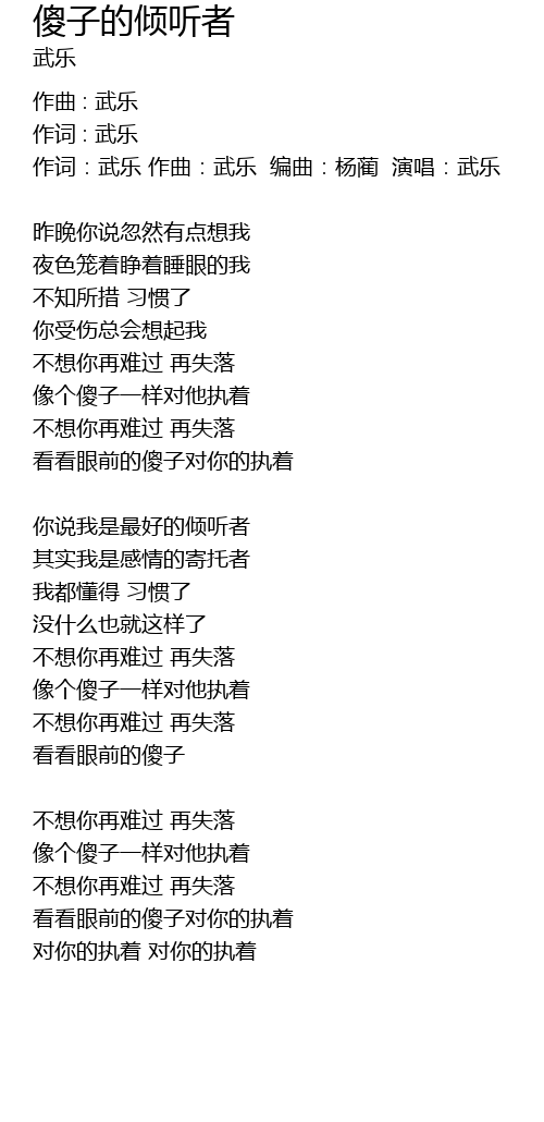 | 作词:武乐 作曲:武乐 编曲:杨蔺 演唱:武乐 | |