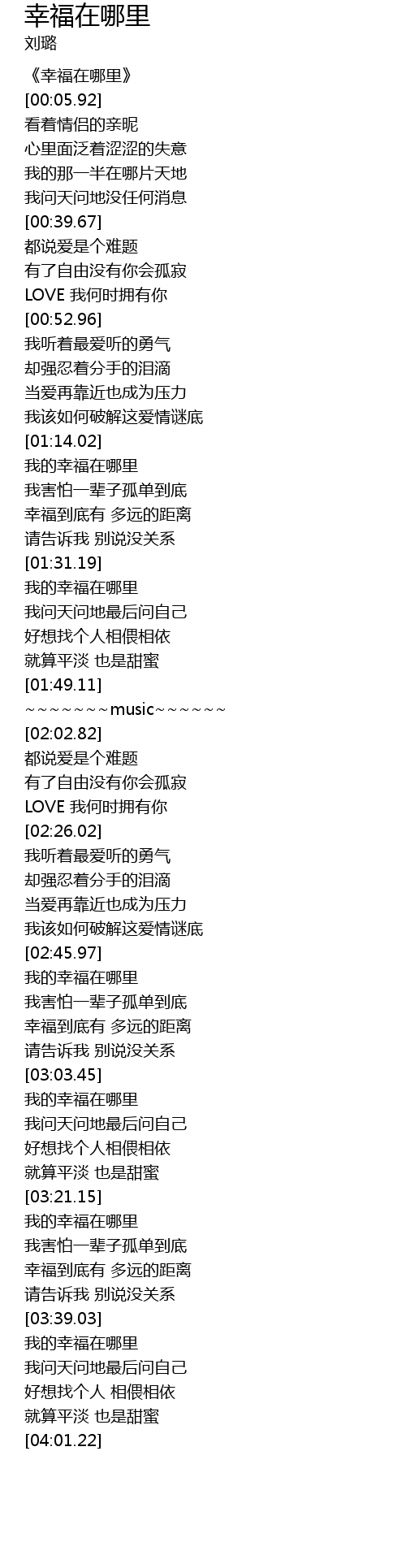 | [00:00.31] | xìng fú zài nǎ lǐ |