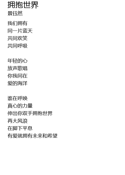 | shēn chū nǐ shuāng shǒu yōng bào shì jiè | |