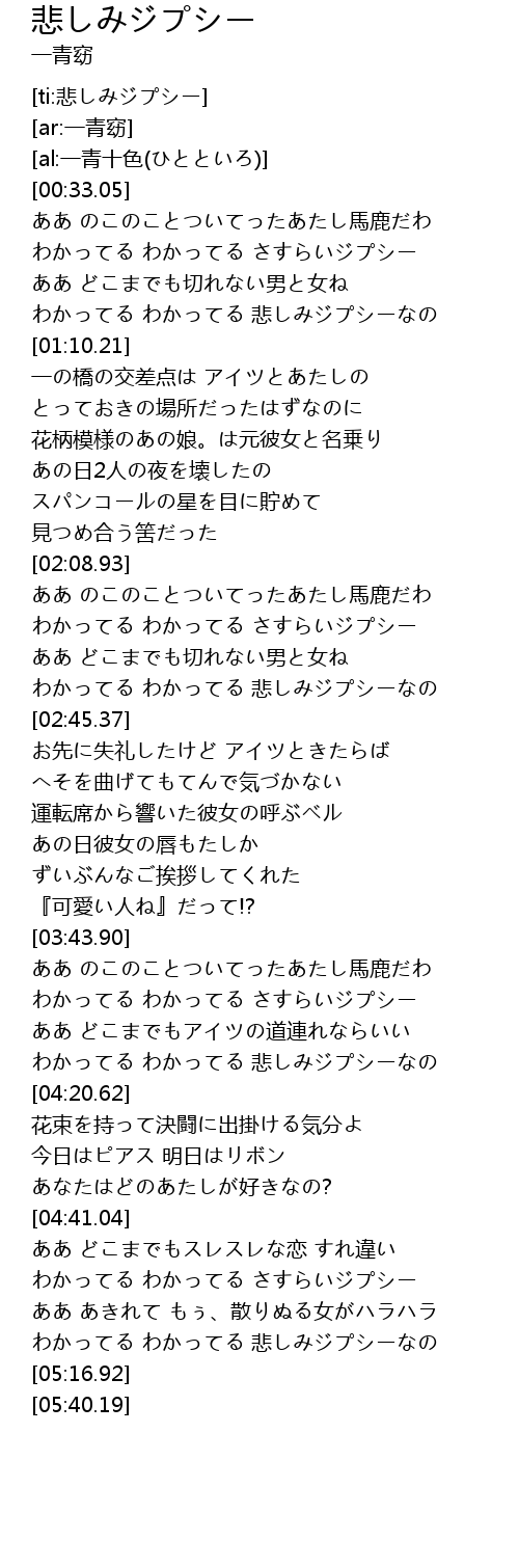 | [00:59.90] | わかってる わかってる 悲しみジプシーなの |