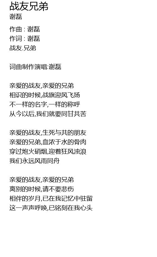| qīn ài de zhàn yǒu, qīn ài de xiōng dì | |