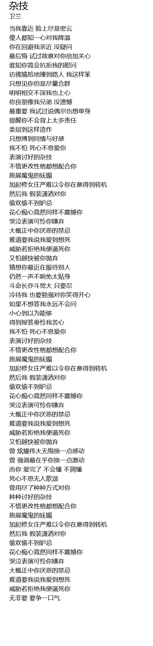 | [02:58.16] | 表演讨好的杂技 |