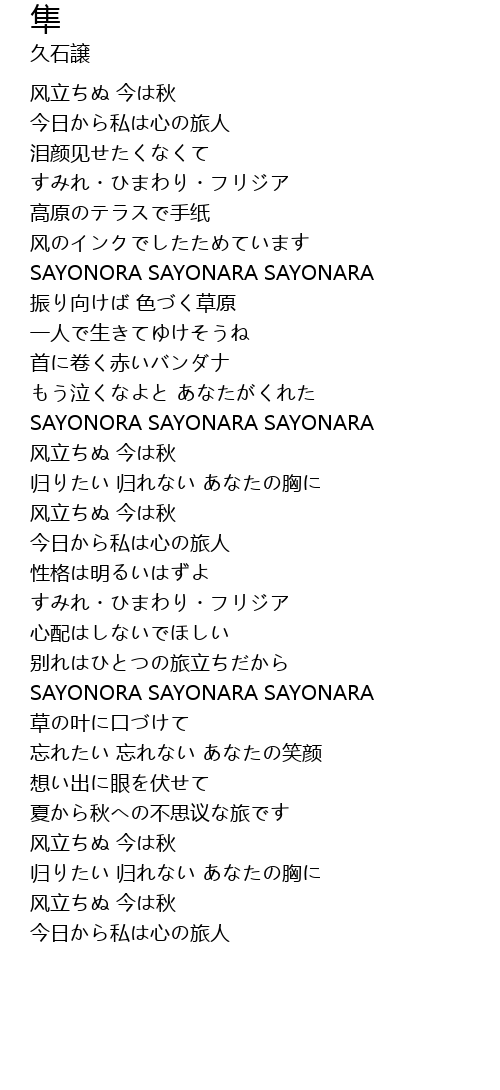 | [00:12.57] | 风立ちぬ 今は秋 |