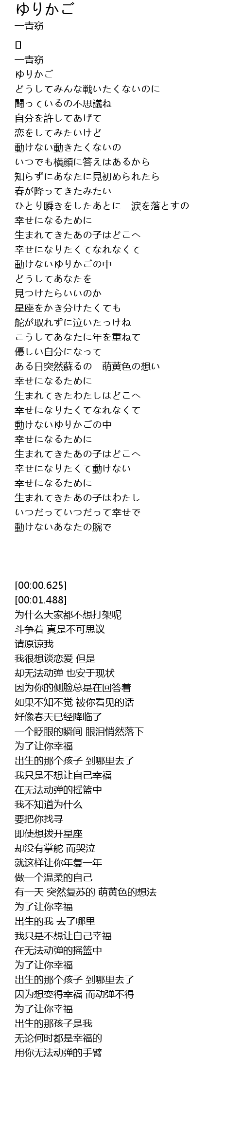 | [00:01.488] | ゆりかご |