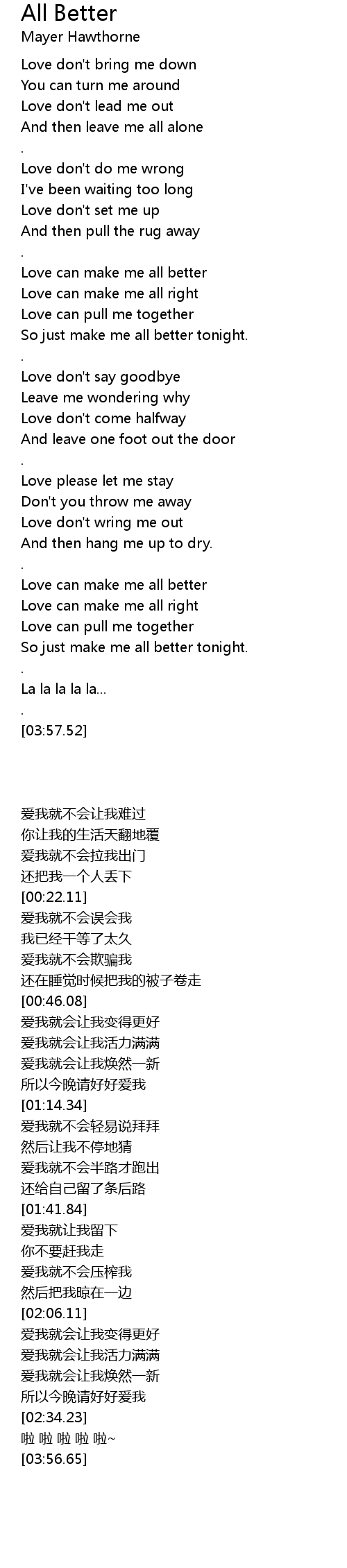 All Better Lyrics