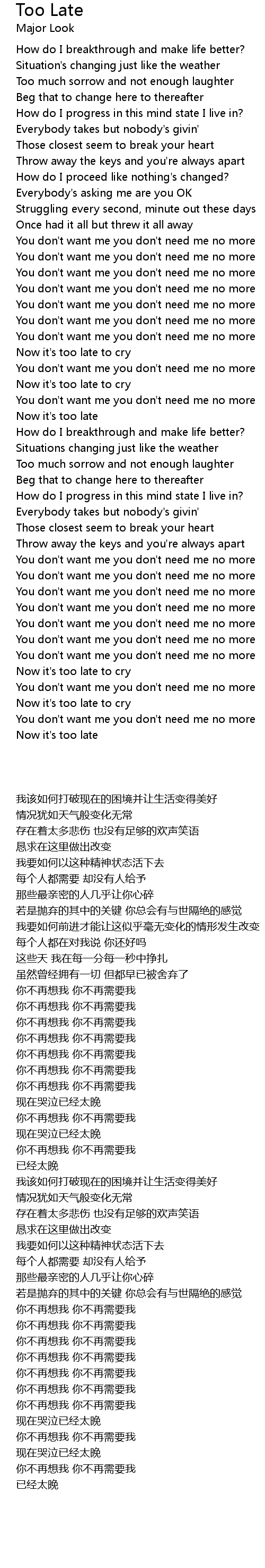 Now it's too late to cry |