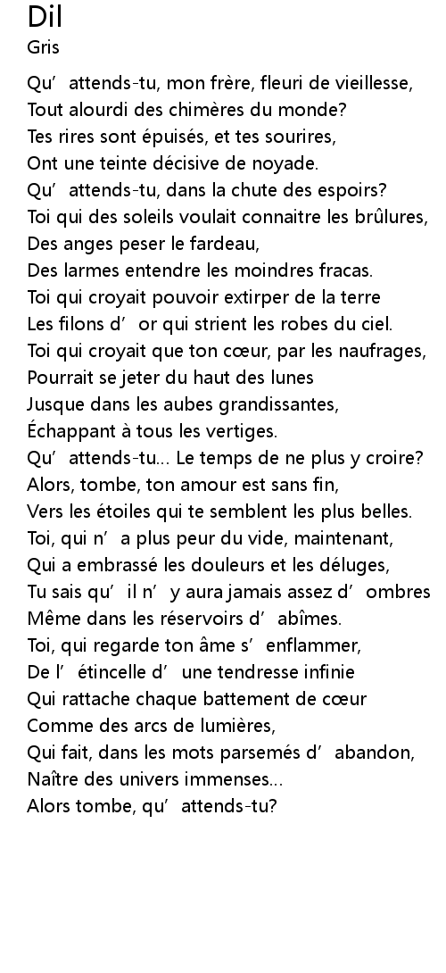 | Qui fait, dans les mots parsemé s d' abandon, | |