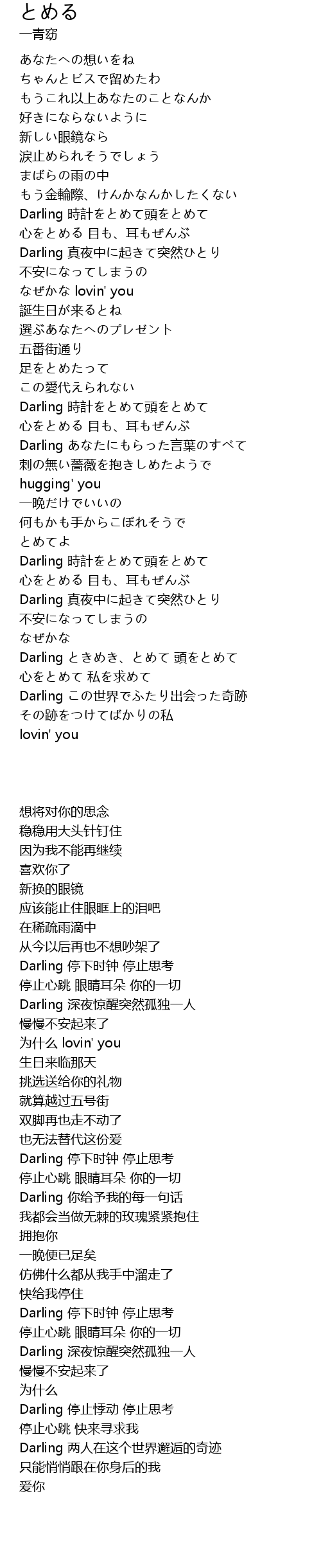 | [02:16.650] | Darling 時計をとめて頭をとめて |