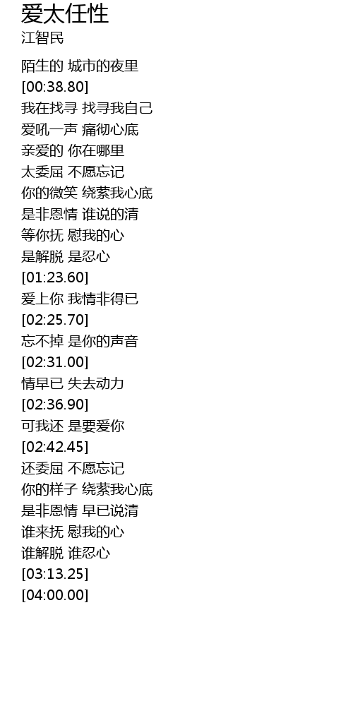 | [00:39.70] | 我在找寻 找寻我自己 |