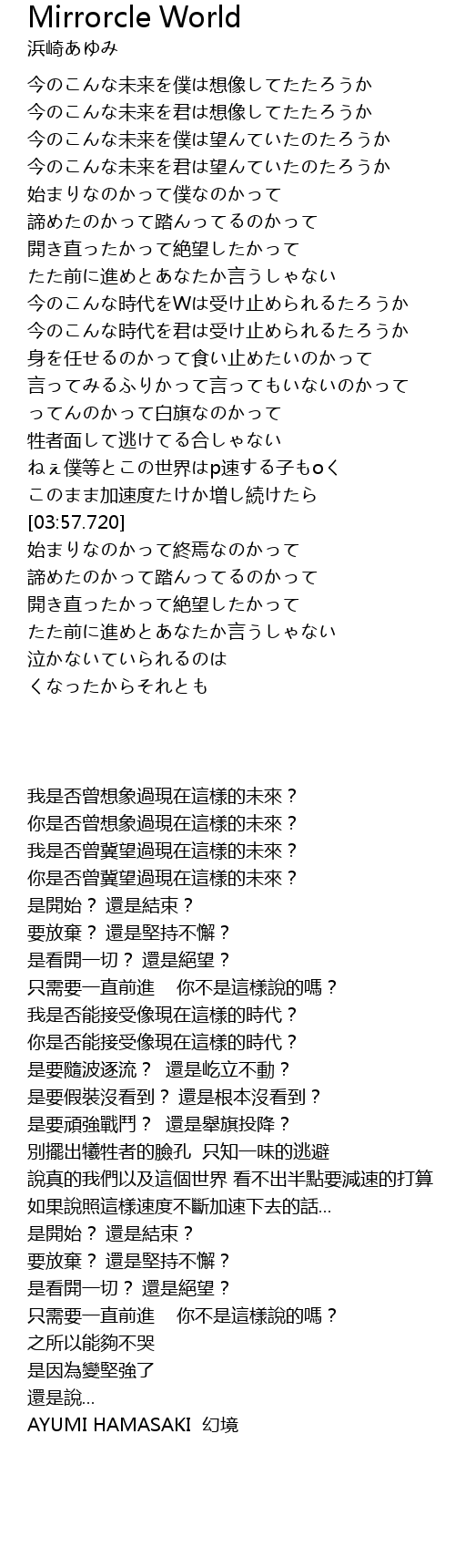 | [03:39.110] | ねぇ僕等とこの世界はp速する子もoく |