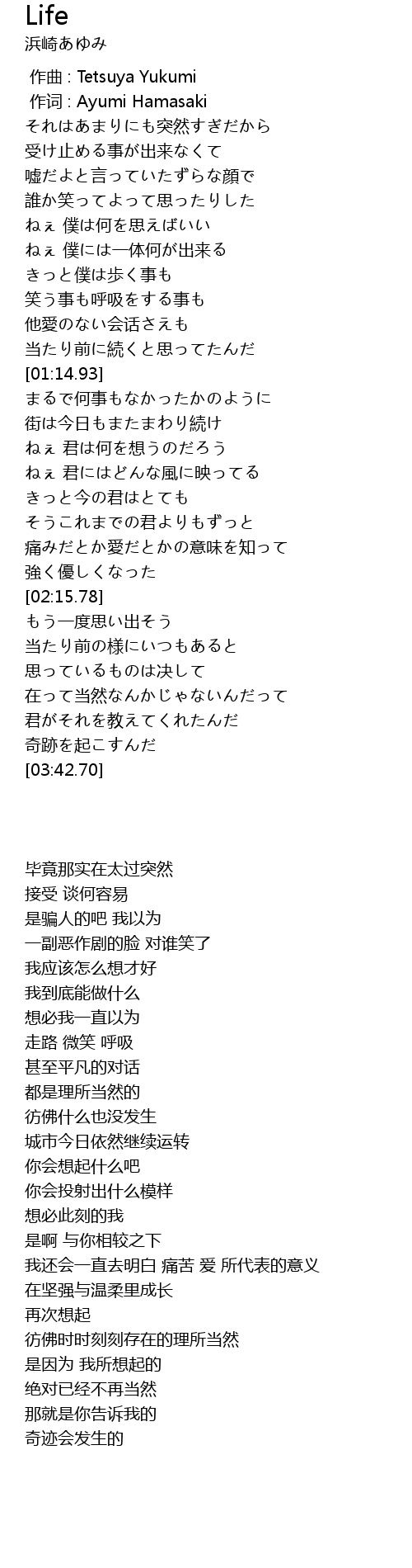 作词 : Ayumi Hamasaki |