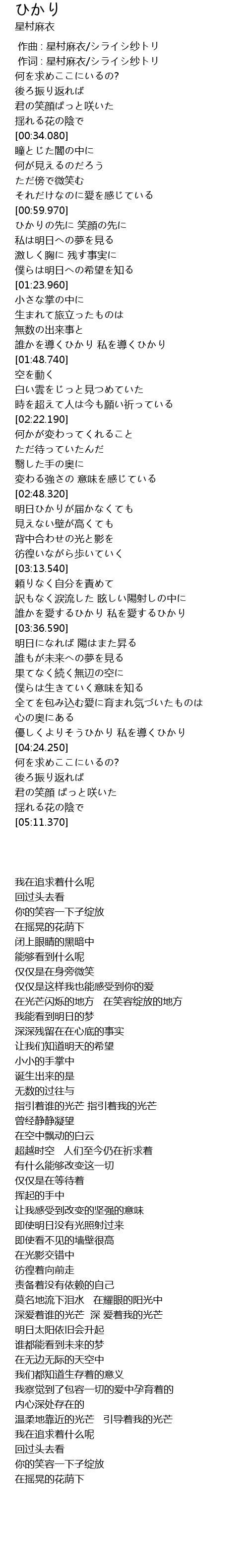 | [01:36.530] | 誰かを導くひかり 私を導くひかり |