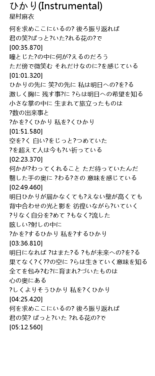| [03:25.760] | ?かを?するひかり 私を?するひかり |