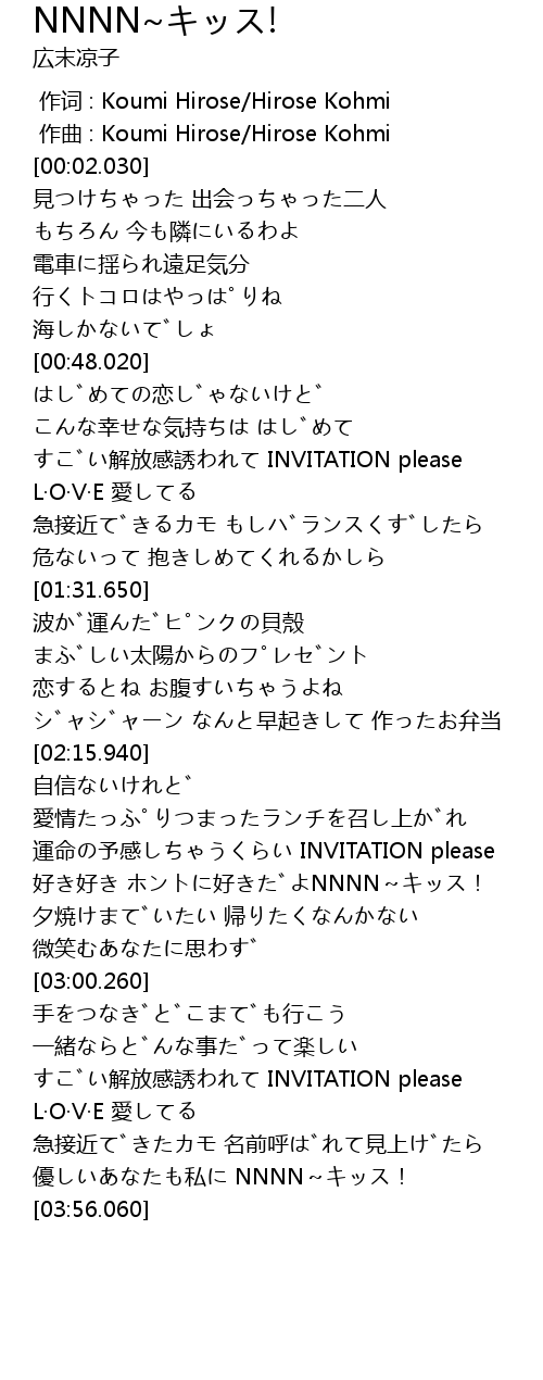 | [03:46.790] | 優しいあなたも私に NNNN~キッス! |