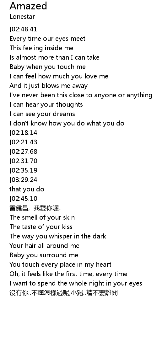 | [03:39.66][02:45.10][01:22.81] | Baby, I' m amazed by you |