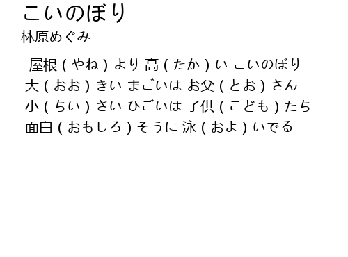 屋根(やね)より 高(たか)い こいのぼり