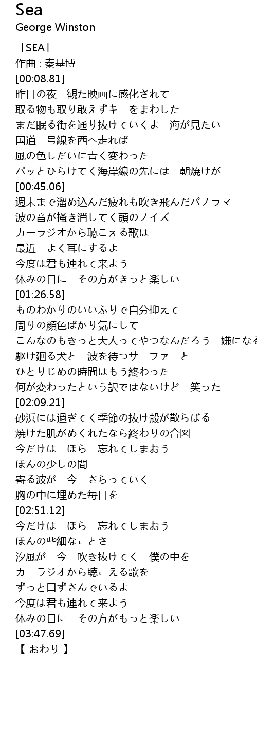 | [03:18.11] | 汐風が 今 吹き抜けてく 僕の中を |