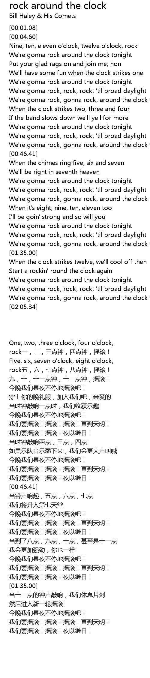 Nine, ten, eleven o'clock, twelve o'clock, rock |