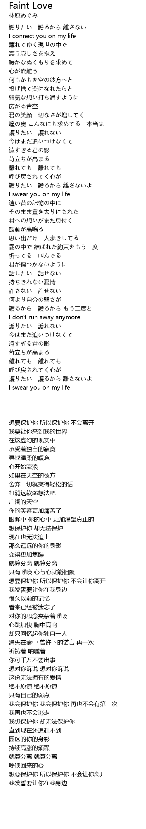 | [01:29.53] | 護りたい 護るから 離さないよ |