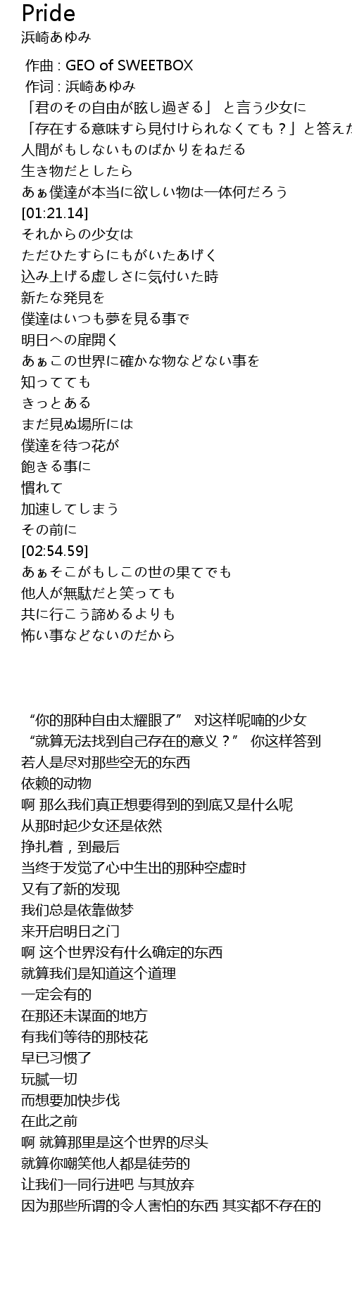 | [00:01.00] | 作词 : 浜崎あゆみ |
