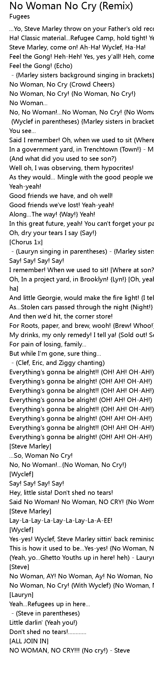 No Woman, No Cry! (With Wyclef) {No Woman, No Cry!}