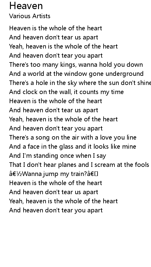 | And heaven don't tear us apart | |